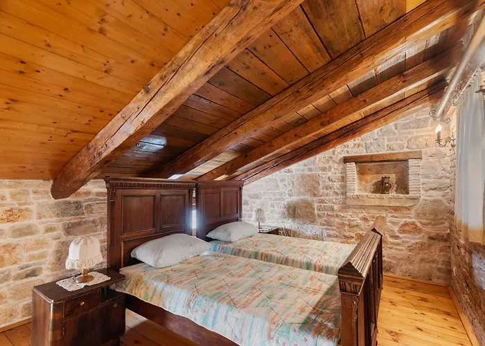 De Lima Baai is binnen 3 km van het vakantiehuis gelegen en de Baai van Raša is op ongeveer 10 minuten rijden.